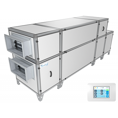 - Приточно-вытяжная установка напольного типа с противоточным пластинчатым рекуператором, системой защиты от замерзания.