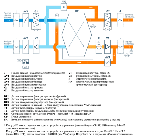 - Встроенная истема защиты от замерзания и система разморозки рекуператора.