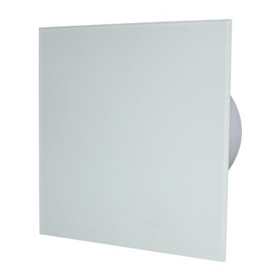 Дизайнерский бесшумный вентилятор белое стекло, , с датчиком влажности. Включается при влажности более 70%.
