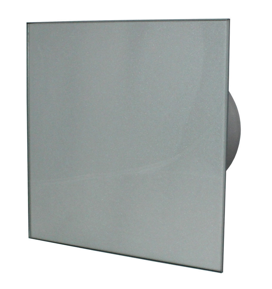 Дизайнерский бесшумный вентилятор светло серое стекло, с датчиком влажности. Включается при влажности более 70%.